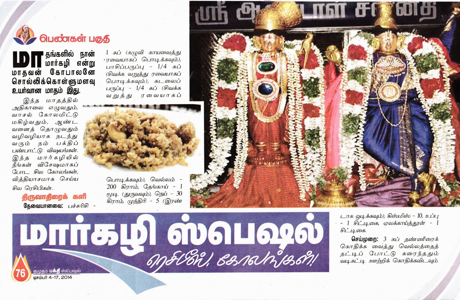 மார்கழிக் கோலங்களும் நிவேதனங்களும் குமுதம் பக்தி ஸ்பெஷலில்.