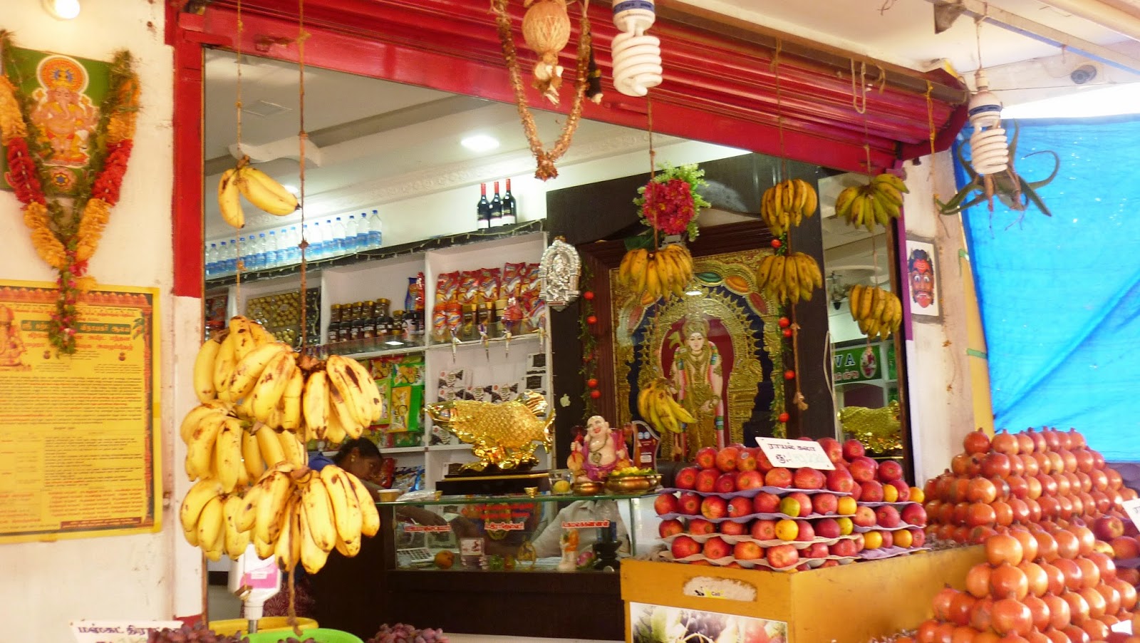 காரைக்குடி எங்கும் இப்போது பழக்கடை. எனவே ஒரு பிரம்மாண்டப் பழக்கடையில் இரு விநாயகர்கள். !!! தேடிப்பார்த்துக்குங்க எங்கேன்னு :)