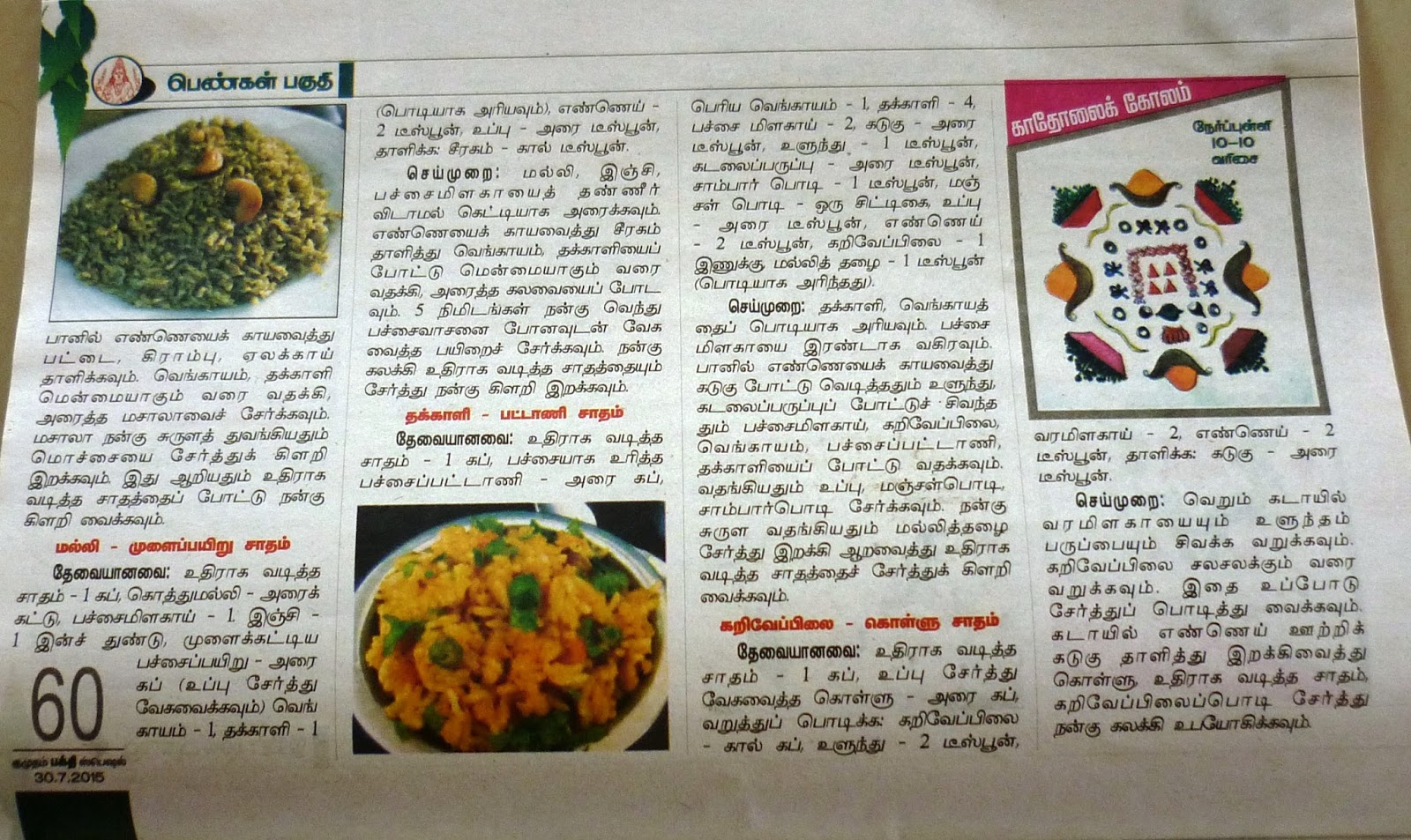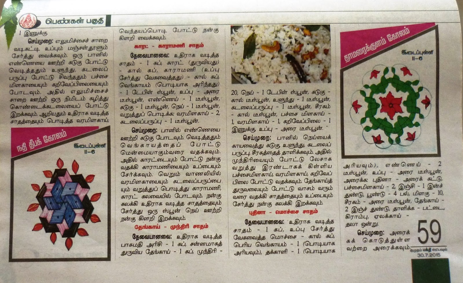 ஆடி 18 ஆம் பெருக்குக்கான ரெசிப்பீஸ் :-