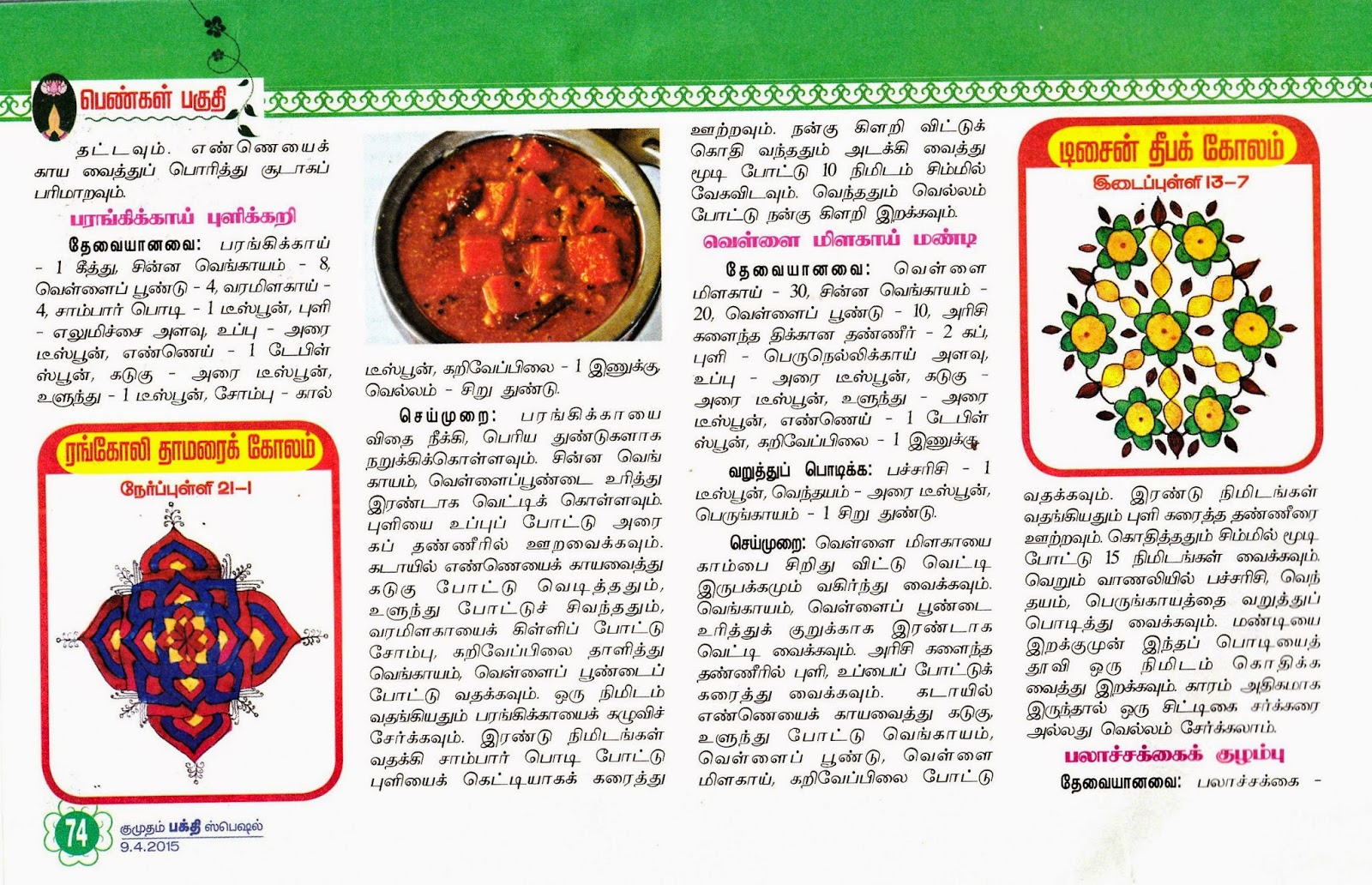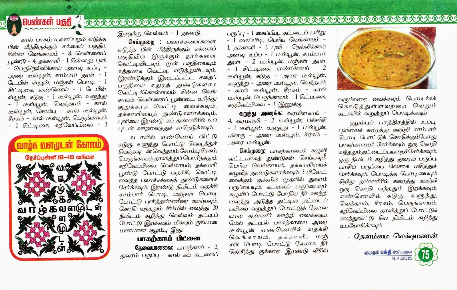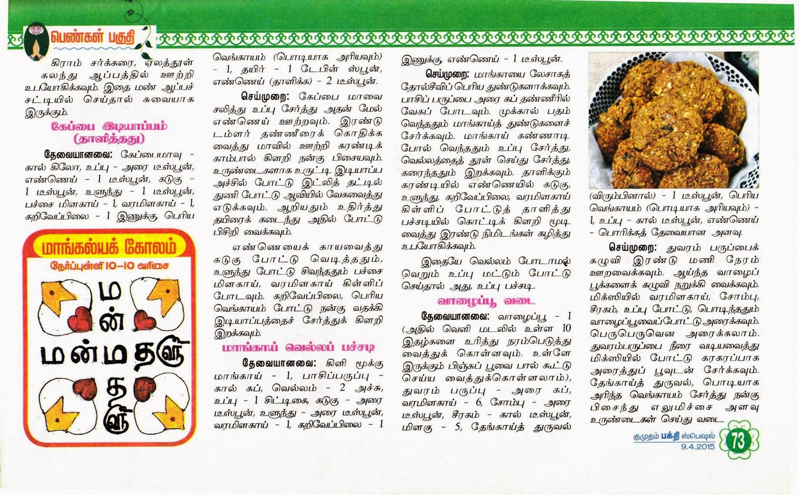 டிஸ்கி :- இந்த ரெசிப்பீஸ் ஏப்ரல் 1 - 15 , 2015 தமிழ்ப் புத்தாண்டு இதழில் வெளிவந்தது.