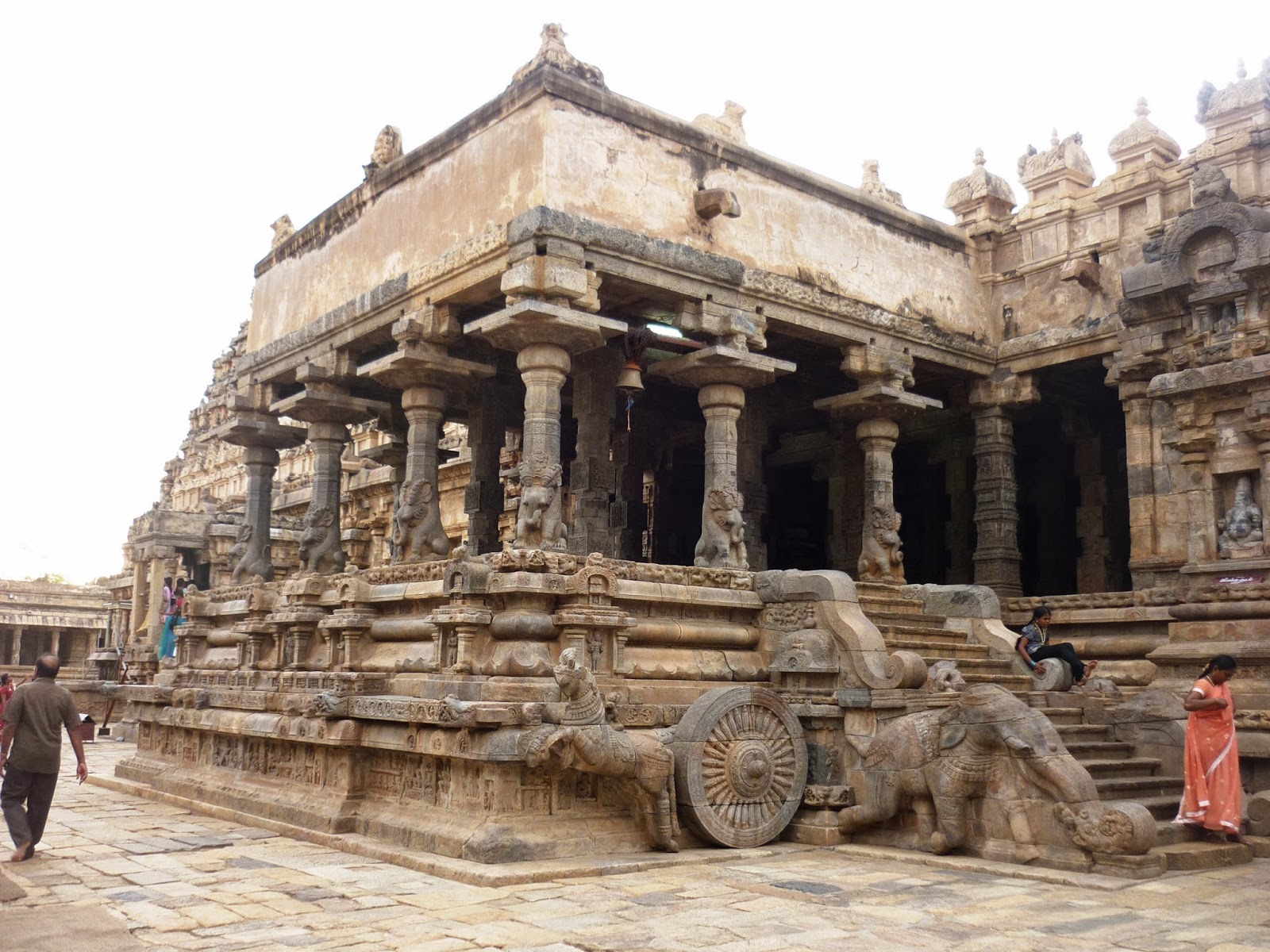 கருவறையின் முன் மண்டபங்கள் கூட குதிரை யானை இழுக்கும் தேர் போலவே இருக்கின்றன. யாழிகள், சிங்கங்கள், குள்ளர்கள், தேவதைகள், நாட்டியக்காரிகள், இவர்களோடு 63 நாயன்மார்கள், சிவனடியார்களின் சிற்பங்களும் செதுக்கப்பட்டுள்ளன.