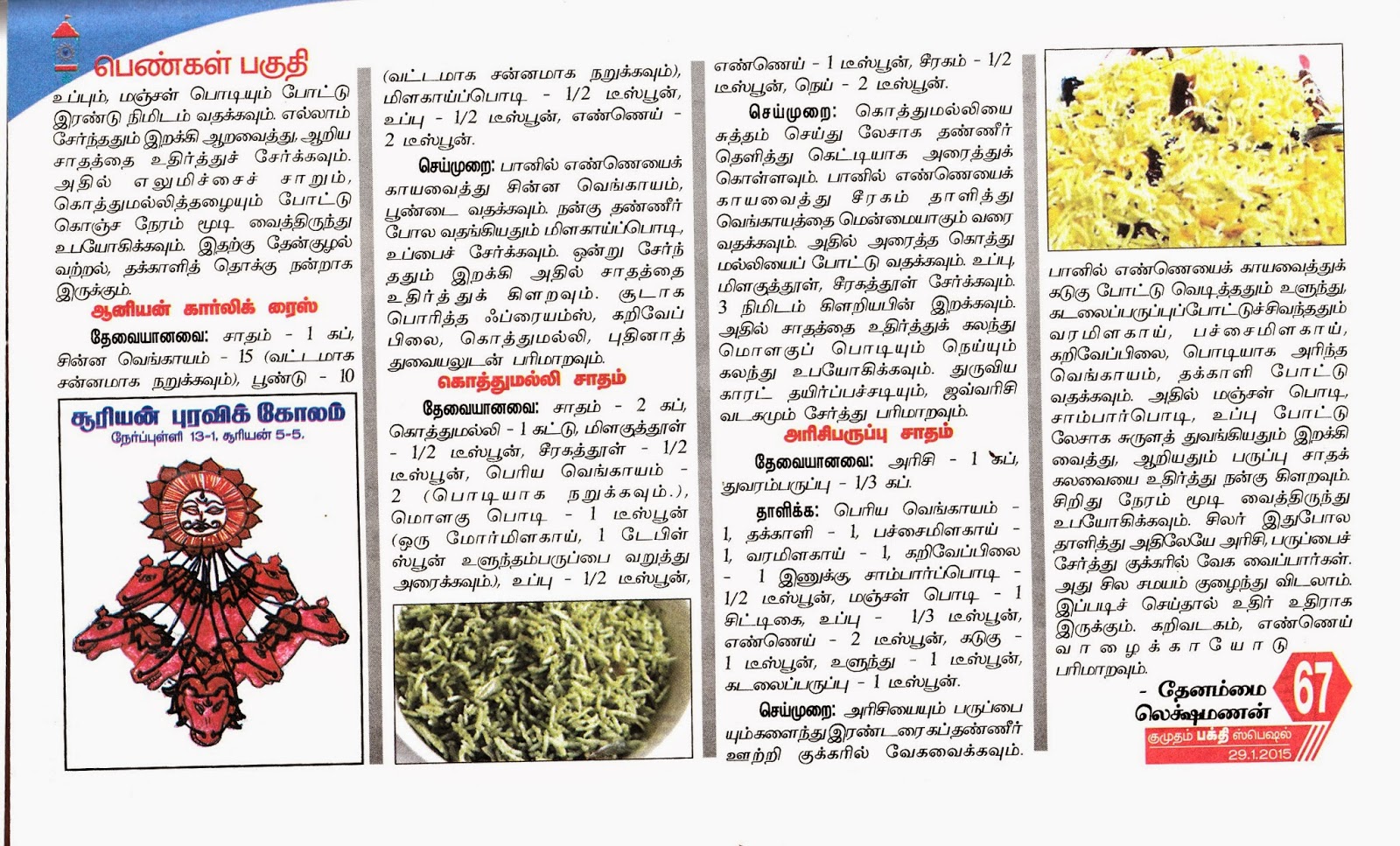 டிஸ்கி:- இந்த ரெசிப்பீஸ் ஜனவரி 15 - 31 , 2015 குமுதம் பக்தி ஸ்பெஷலில் வெளிவந்தவை.