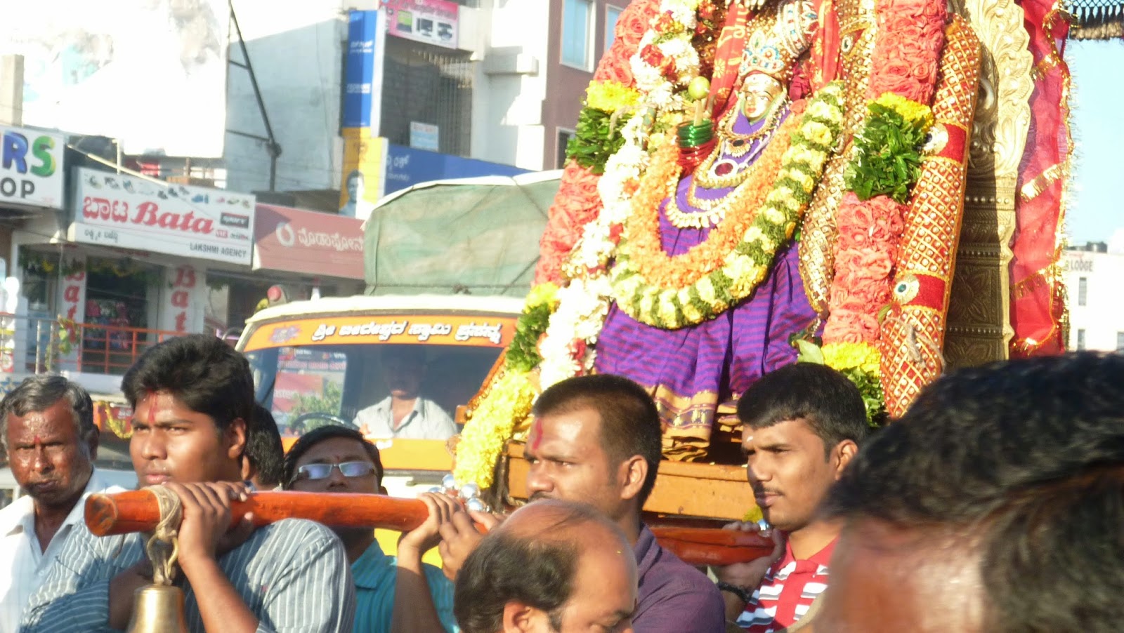 பெங்களூருவில் கே ஆர் புரத்தில் நவராத்திரியின்போது சாமியை எழுந்தருளப்பண்ணி வீதியில் பல்லாக்கில் உலாவாக எடுத்துவந்தார்கள்.